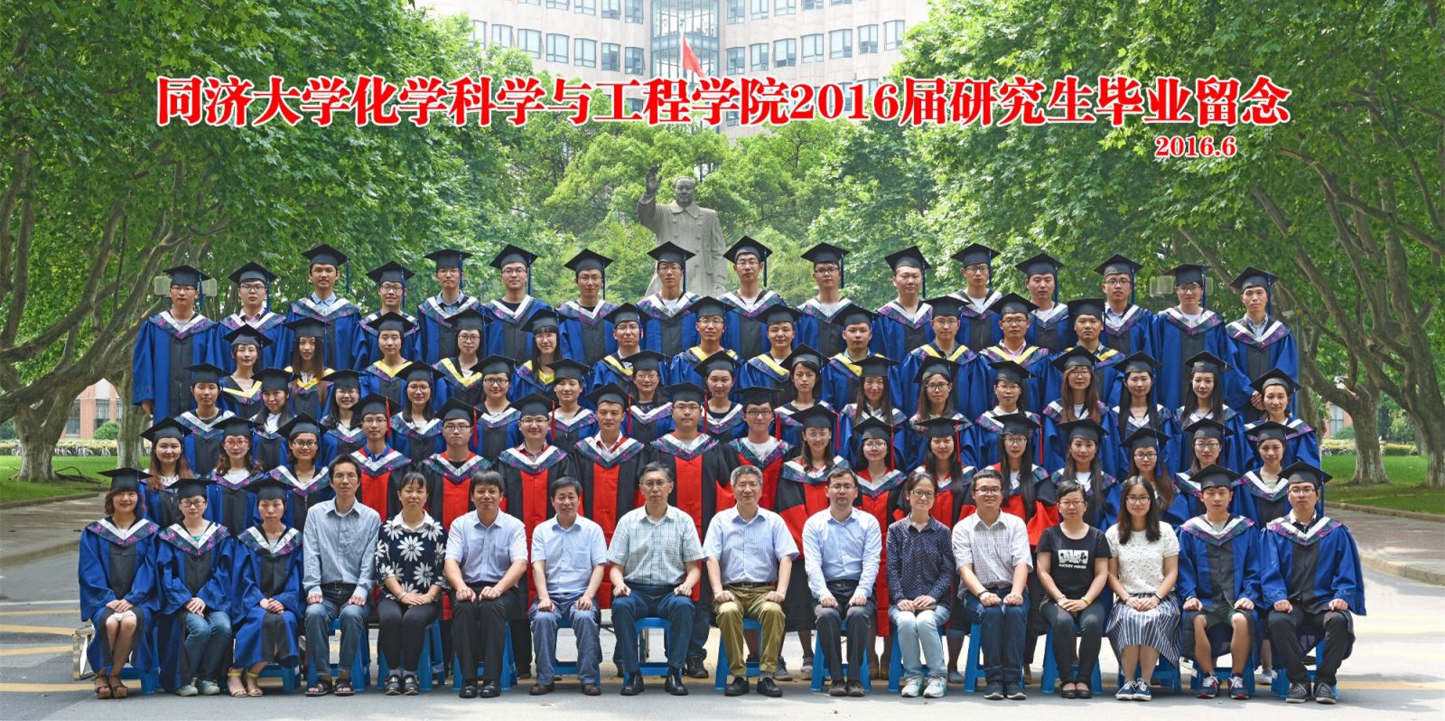 毕业典礼前,全体毕业研究生与教师代表在毛主席像前合影留念。