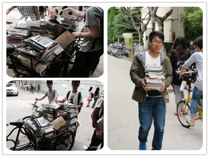 经过几个小时的辛勤工作,回收来的书堆满了一辆三轮车。经过整理清点,此次书漂收到了英语、数学、物理、政治哲学等基础课程和化学专业课程教材共计约500余本,这些书将在后续的开学季免费赠送给有需要的低年级同学们。
