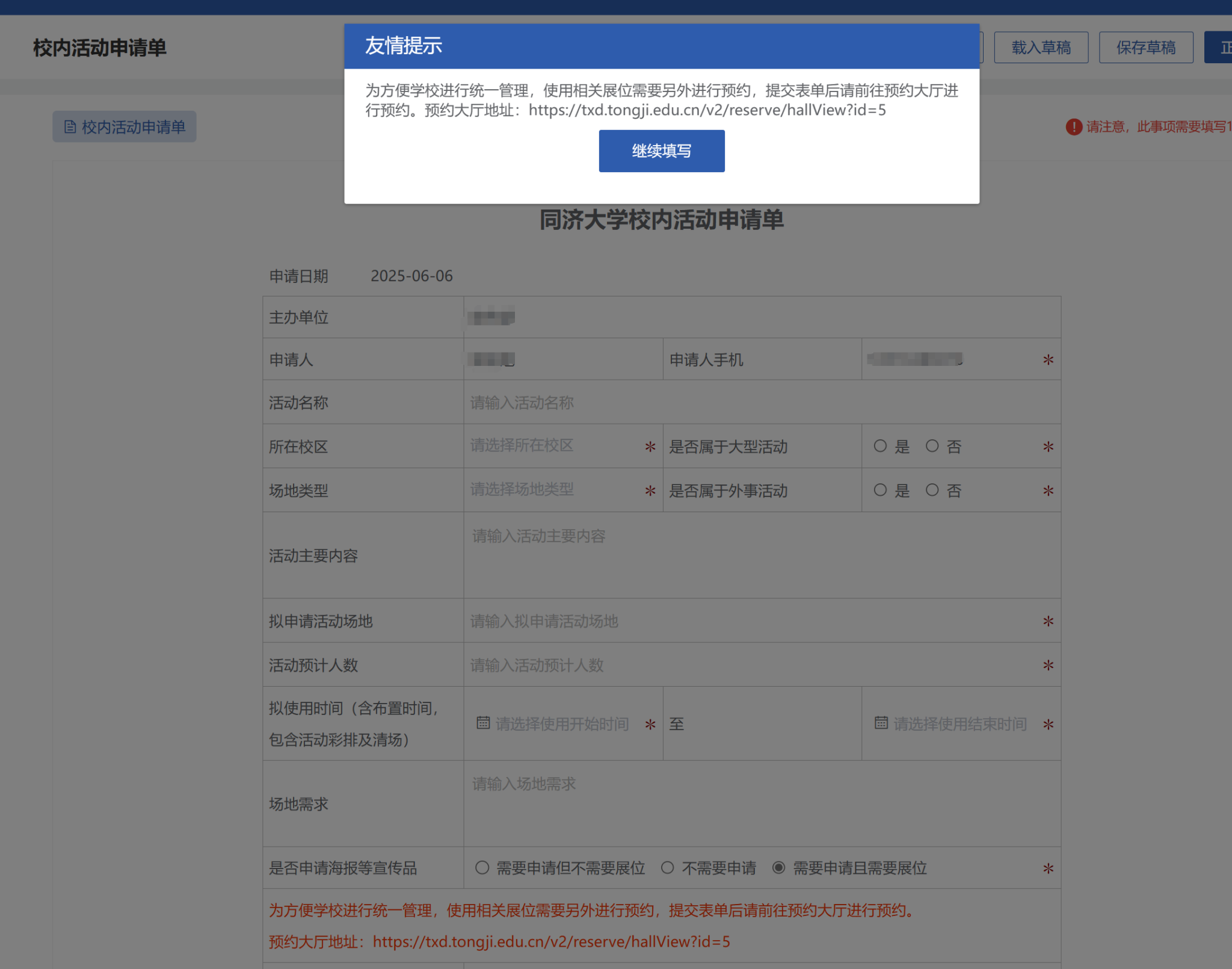 按要求填写相关内容,并上传活动相关申请材料。按需选择是否需要宣传品,并上传宣传品最终版进行审核。如需要展位,请按要求进行展位预约。