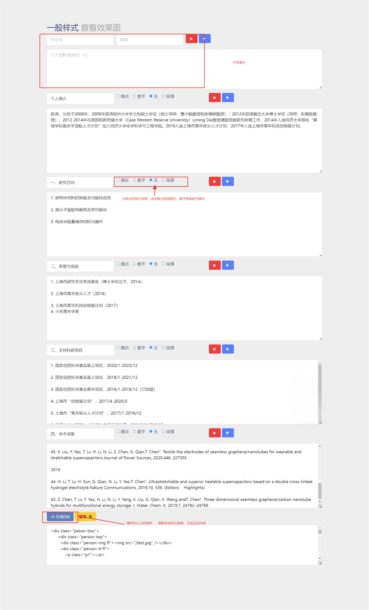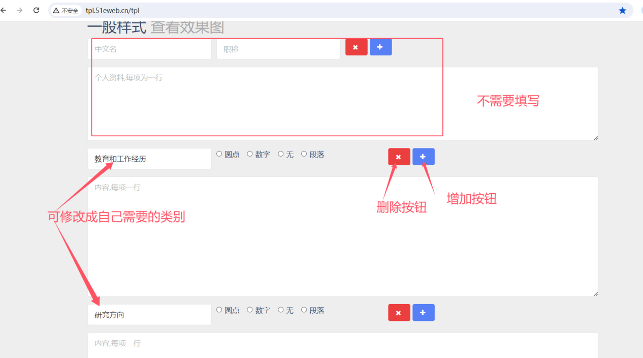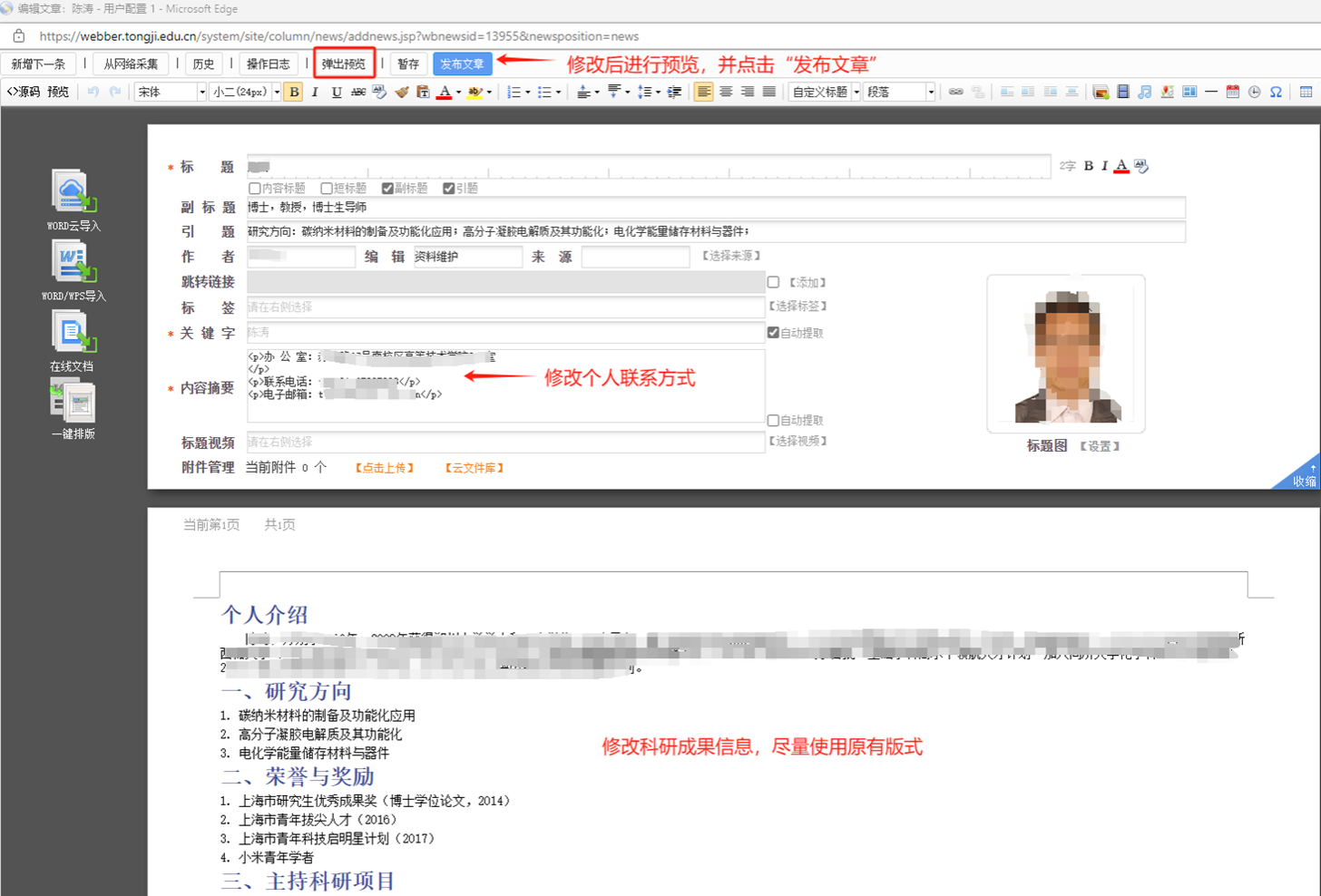 2. 对个人信息内容进行更新修改,尽量不改动原有代码及格式,修改后点击预览并提交。