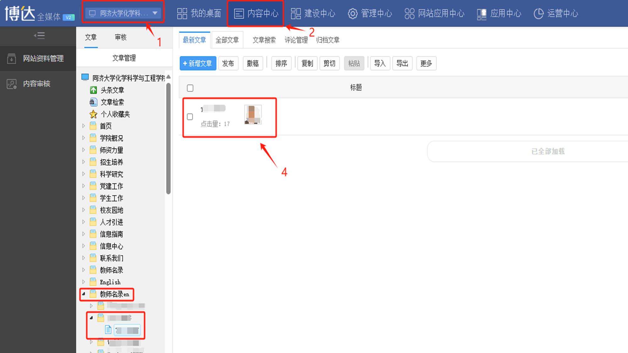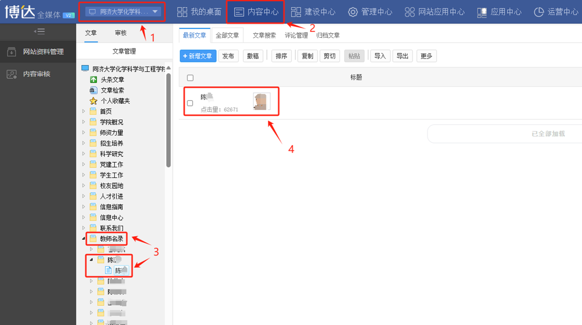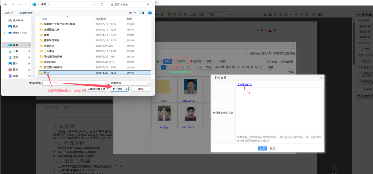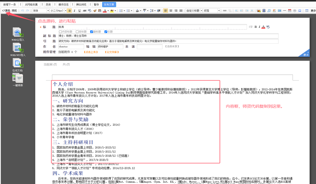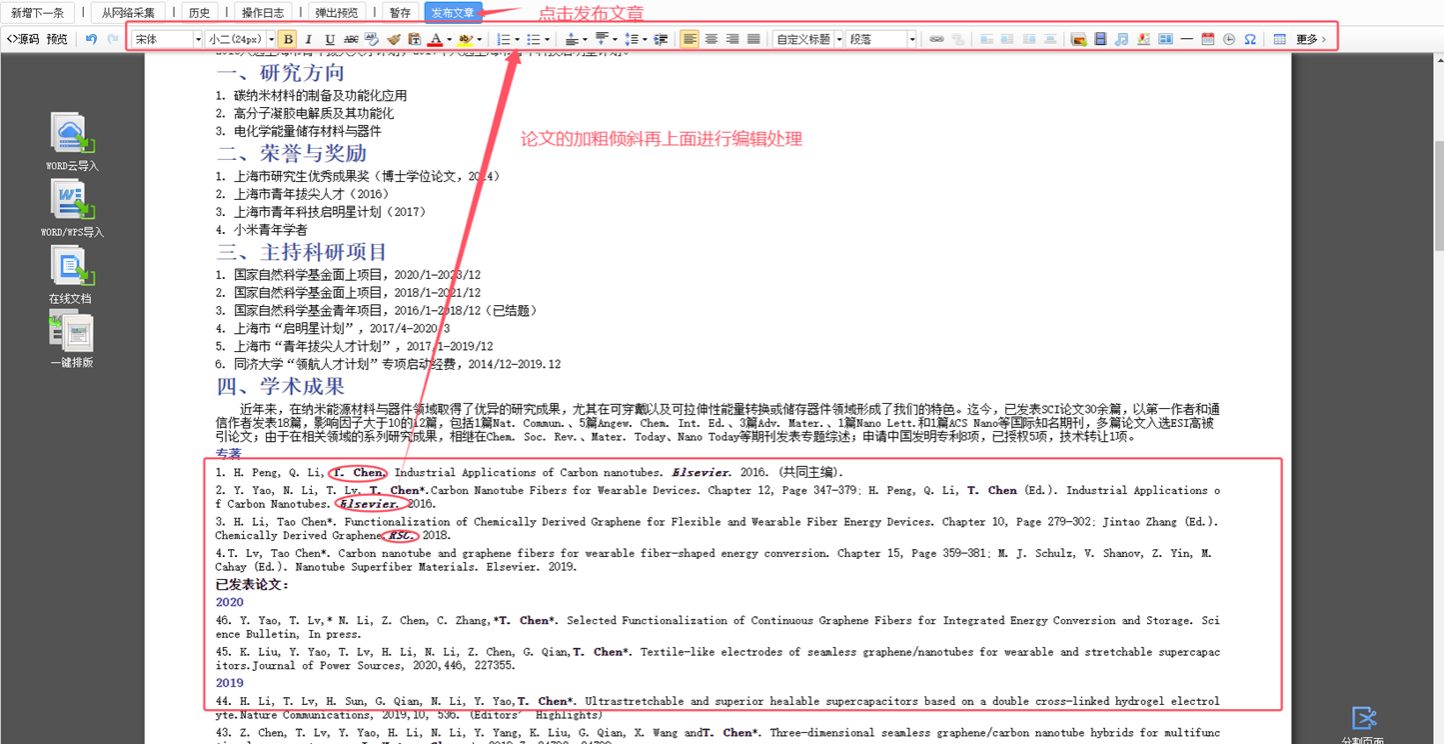 1. 打开左边侧边栏中“教师名录”——选择对应老师文件夹(见图片),按截图步骤操作,可对中文个人主页进行修改。