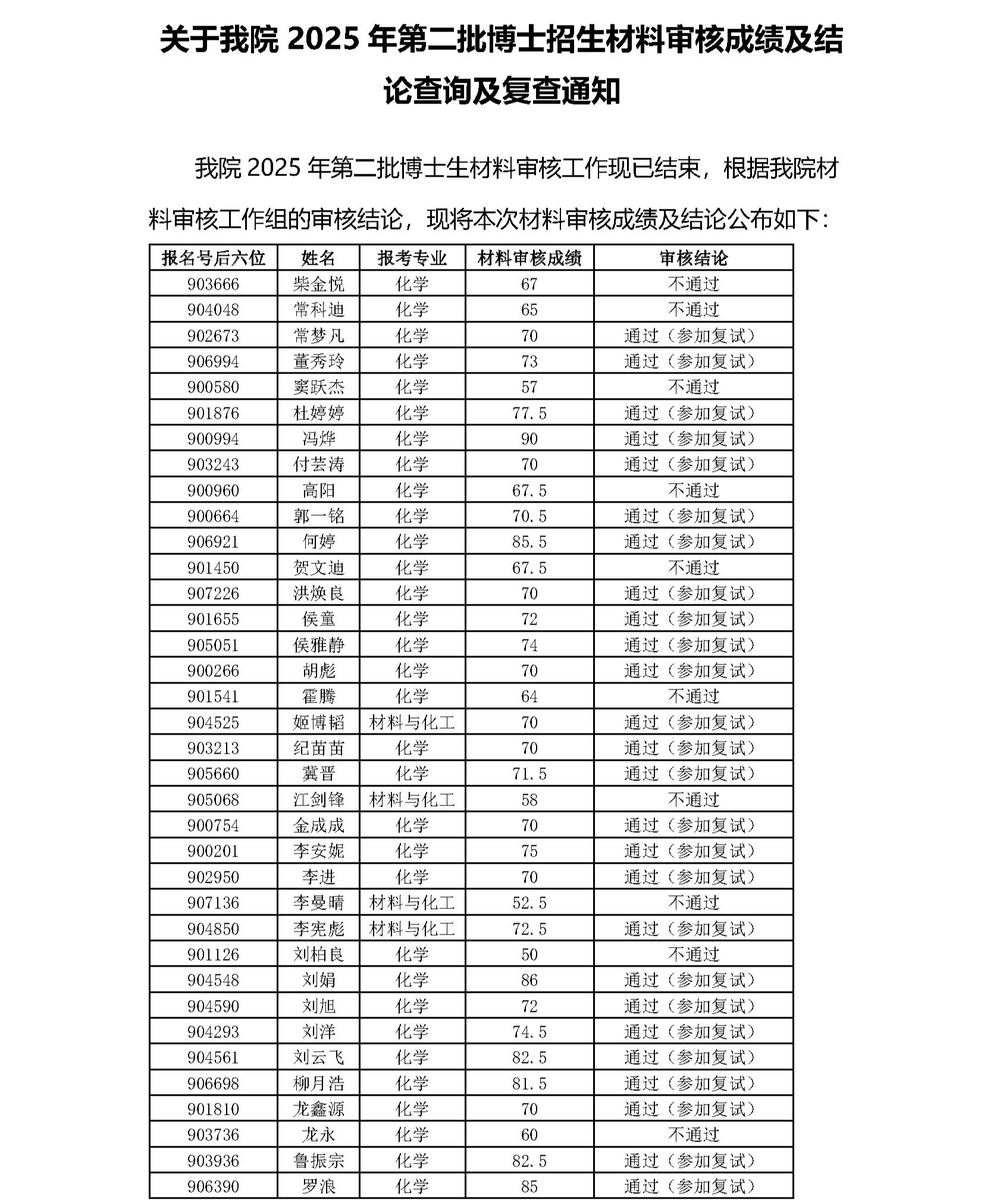 关于公司2025年第二批博士招生材料审核成绩及结论查询及复查通知