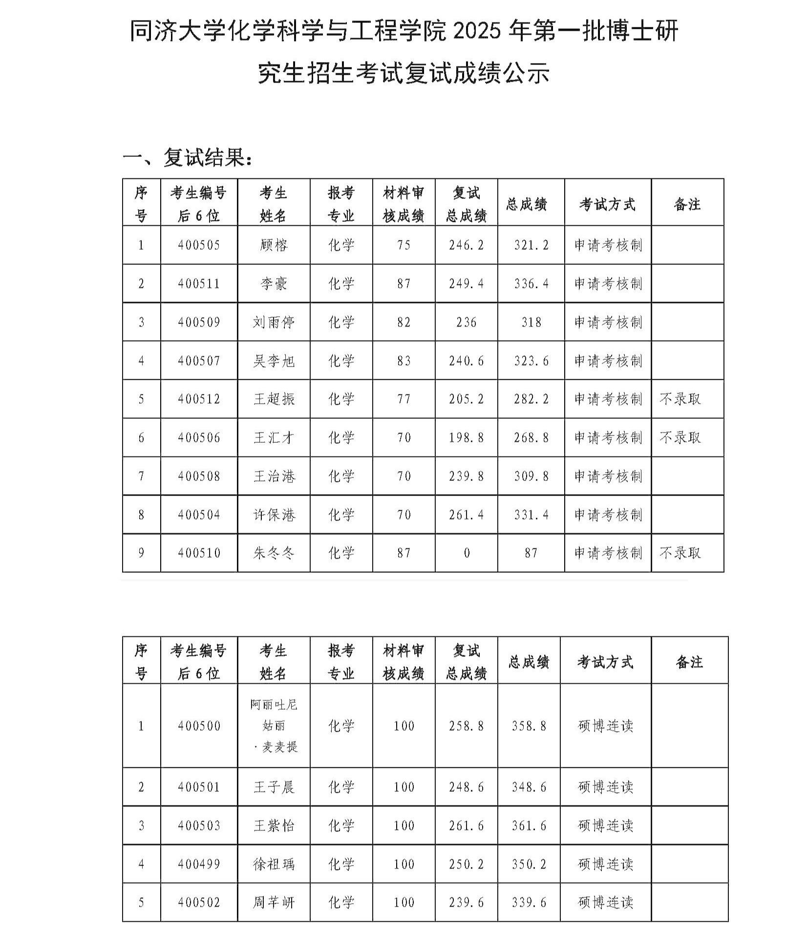 best365中国官方网站2025年第一批博士研究生招生考试复试成绩公示